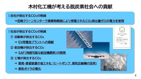 3つ目の工場が排出するCO2削減への貢献では、当社の蒸発・蒸留装置の省エネ化や蒸気ボイラの電化技術によりCO2削減に貢献します。